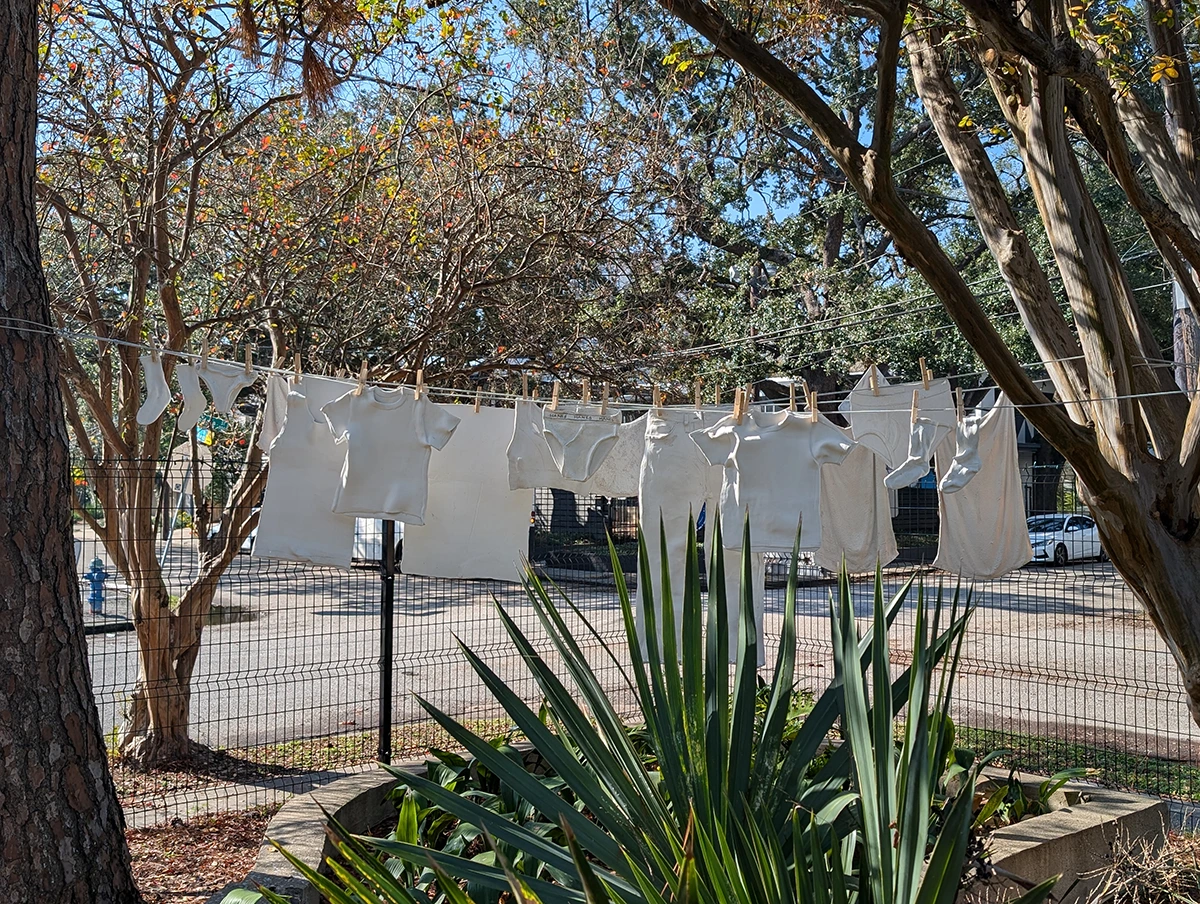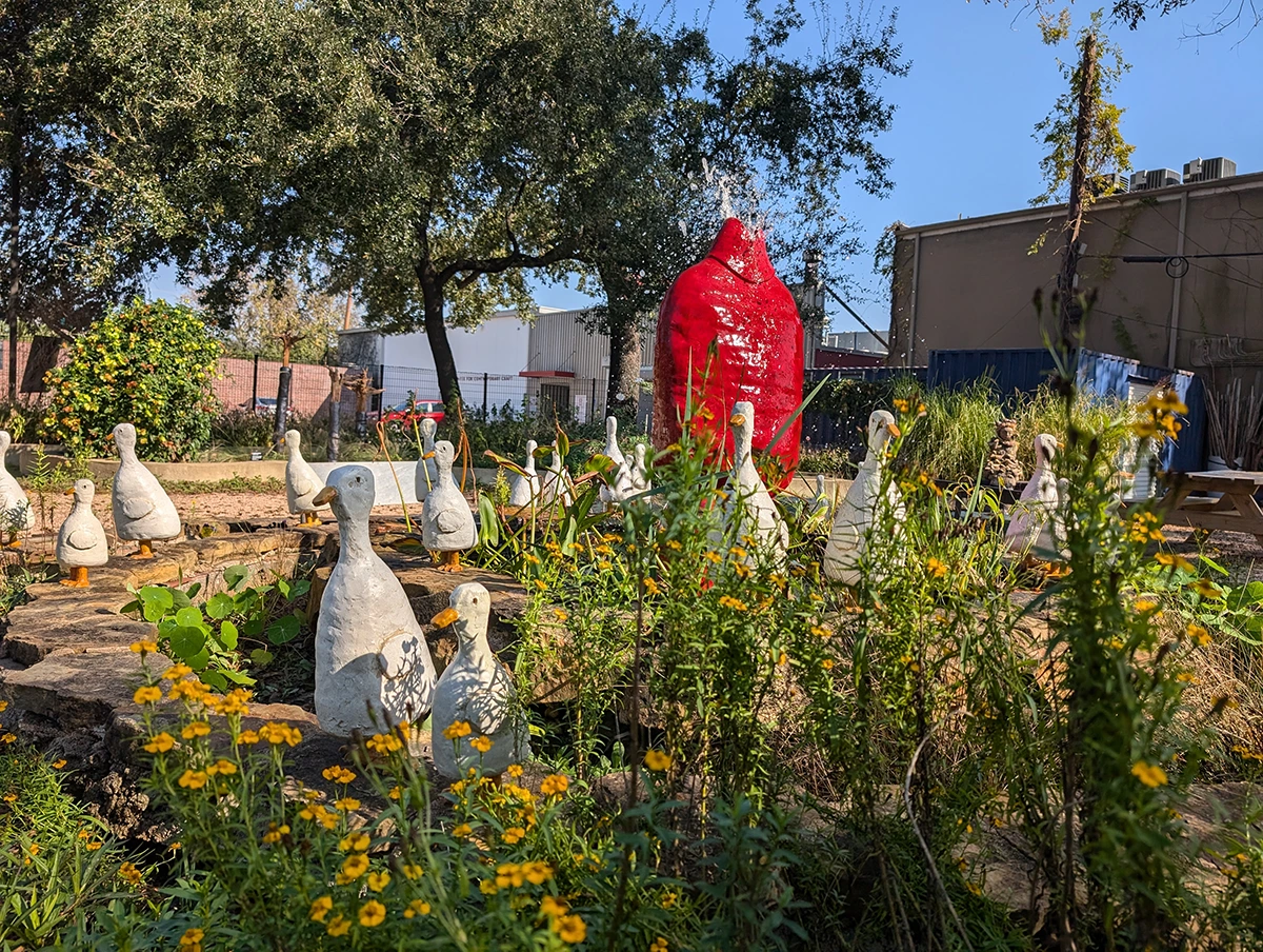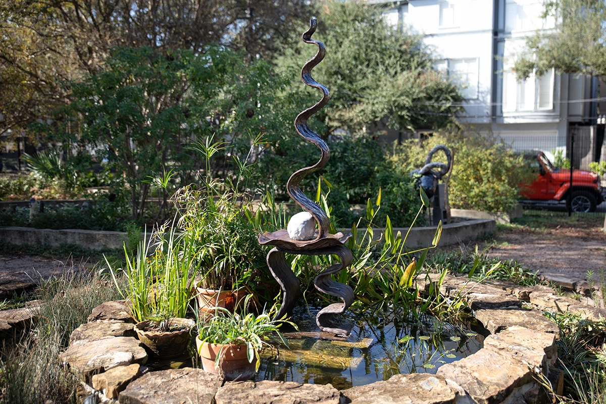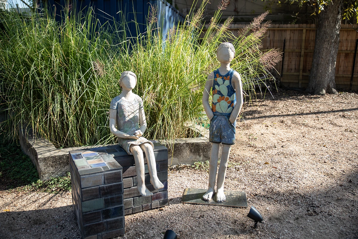 Installed in the Craft Garden at Houston Center for Contemporary Craft, CITE (Ceramics in the Environment) features site-specific ceramic sculpture created by students from the Museum of Fine Arts, Houston’s Glassell School of Art. Led by former HCCC resident artist Jeff Forster, the artists in his Special Topics class were tasked with exploring the narrative potential of the location and creating artwork inspired by the garden’s flora and fauna.